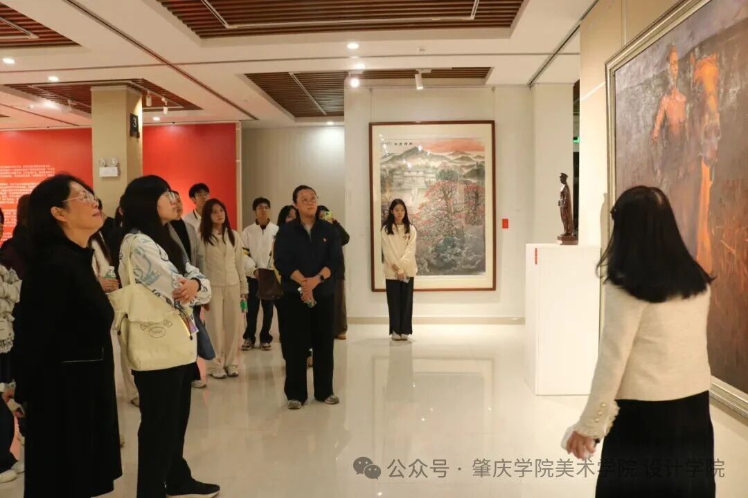 活动伊始,全体师生在美术馆正门整齐列队合影,定格下这场红色研学的起点。随后,美术馆副馆长刘晓慧亲自担任讲解员,带领同学们有序步入展厅,开启了一场历时近30分钟的深度导览。